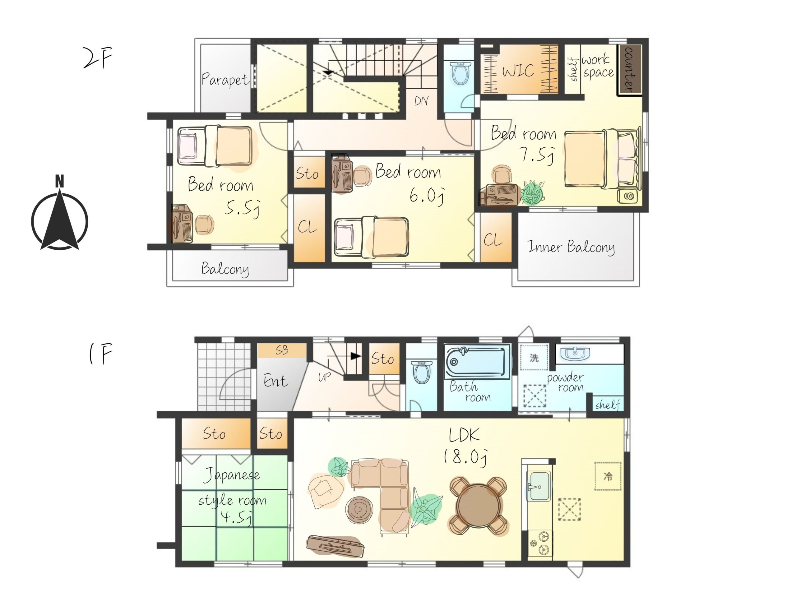 | 間取り詳細 | LDK18.0帖、洋室7.5帖、洋室6.0帖、洋室5.5帖、和室4.5帖 | ||